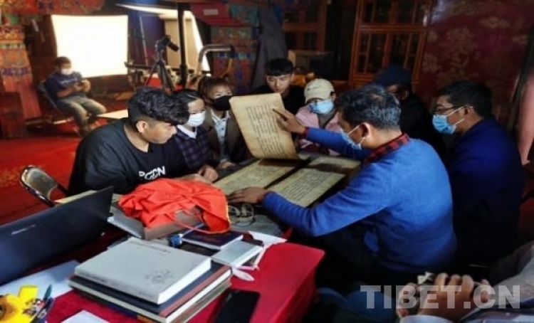圖為2021年,西藏民族大學實習生在布達拉宮學習古籍文獻知識