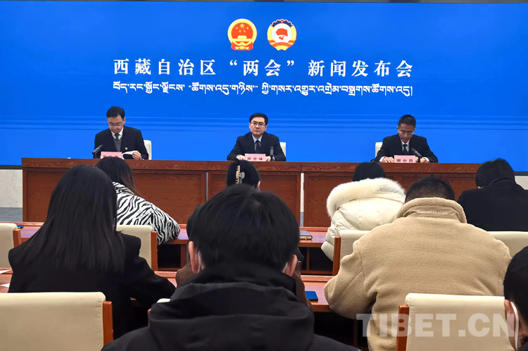 圖為西藏自治區(qū)“兩會”新聞發(fā)布會現(xiàn)場 攝影:次旦拉姆
