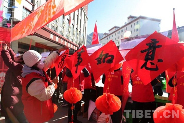 “看到藏漢對聯(lián),感覺到新年馬上要到了,祝大家新年快樂、扎西德勒。”市民次仁羅布高興地說。一個個飽含真情的“福”字和一副副紅紅火火的春聯(lián)承載著濃濃的新年祝福。活動現(xiàn)場,很多市民小心翼翼地接過墨跡未干的對聯(lián),愛不釋手地吹了又吹,臉上洋溢著幸福的笑容。