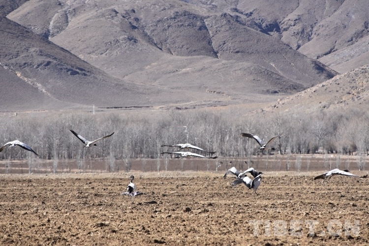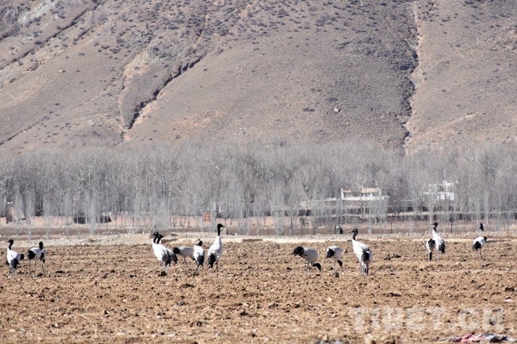 中國西藏網訊 地處雅魯藏布江中游河谷地帶的西藏自治區拉薩市林周縣,被稱為拉薩“糧倉”。每年的冬季,林周縣虎頭山水庫因兩面夾山,周邊有大片的良田,成為黑頸鶴覓食、夜棲的佳地。
