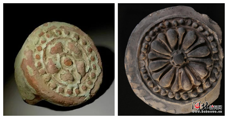 圖為西藏曲水溫江多遺址出土的綠釉紅陶帶筒瓦蓮花瓦當(左圖片來源:國家文物局)與河北正定開元寺附近出土的唐代蓮花紋瓦當(圖右圖片來源:燕趙都市報)紋樣對比