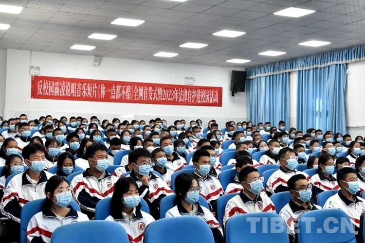 中國西藏網訊 3月7日,由共青團西藏自治區委員會主辦的西藏首部反校園霸凌說唱音樂短片《你一點都不酷》全網首發式暨2023年法律自護進校園推廣活動在拉薩市第二高級中學舉行。