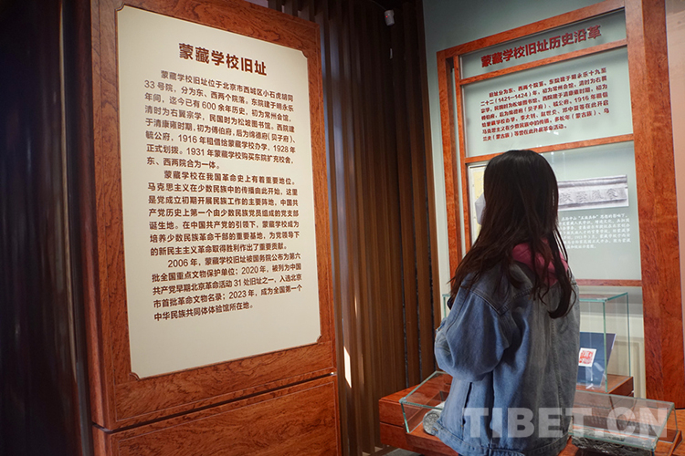 舊址西院,“蒙藏學校舊址專題展”主要展示舊址歷史沿革和革命活動,蒙藏學校學生參加五四運動;李大釗、鄧中夏、趙世炎等對蒙藏學校青年的馬克思主義啟蒙和革命引導;烏蘭夫、多松年 等 蒙藏學校進步青年參加校內外革命活動……突出展現中國共產黨成立后在這里組織開展革命斗爭的歷史。“中華一脈 同心筑夢”主題展分為“共同締造新中國”“團結建設新社會”“攜手奮斗繁榮路”“同心奮進新時代”4個部分。展出照片420多幅,實物、文獻、檔案280余件,藝術展 項 18項,重點展示新時代民族工作取得的新的歷史性成就。