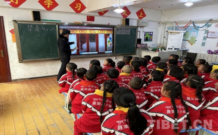 圖為那曲市當木江鄉組織學生講解禁毒常識