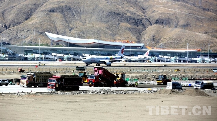 中國(guó)西藏網(wǎng)訊 各式工程機(jī)械緊張有序作業(yè),不遠(yuǎn)處一架架飛機(jī)駛遠(yuǎn)或降落……這正是西藏自治區(qū)拉薩貢嘎機(jī)場(chǎng)新建第二跑道工程如火如荼建設(shè)的場(chǎng)景。