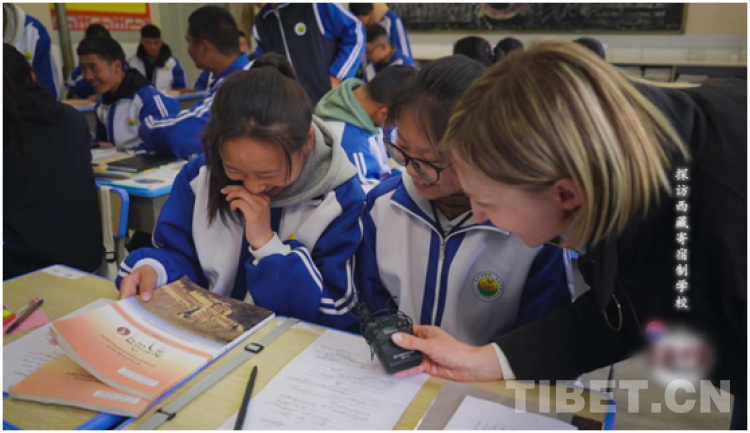 學校現有3個年級43個班級共2345名學生,是一所寄宿制高中。安澤來到一個高一的班級,學生們剛上完一節藏文課。