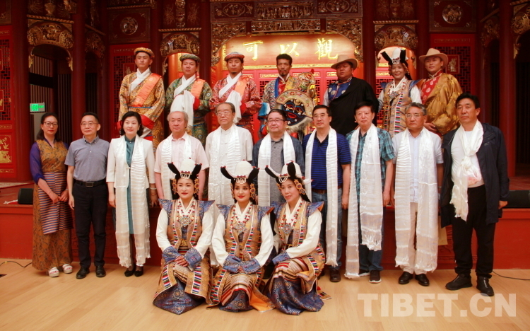 圖為西藏自治區拉薩市城關區娘熱民間藝術團的藝術家們與“戲舞雪域——多元文化視野中的藏戲藝術推廣研討會”專家合影 攝影:劉莉