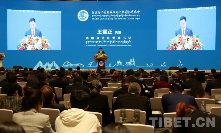 圖為第五屆藏博會主旨論壇,西藏自治區黨委書記王君正作主旨演講 攝影:王佳豪