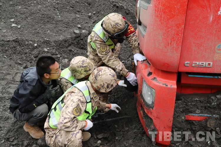 抵達(dá)現(xiàn)場(chǎng)后,武警官兵一邊安撫滯留群眾,給他們發(fā)放高原藥品;一邊對(duì)災(zāi)害現(xiàn)場(chǎng)進(jìn)行勘察,并制定科學(xué)合理的搶通方案。在指揮員的指揮下,他們采取“雙向掘進(jìn)、先通后拓”的戰(zhàn)法進(jìn)行搶通。因部分車(chē)輛深陷泥石流被困,為解救出車(chē)輛,他們利用繩索拖拽的方法對(duì)被困車(chē)輛進(jìn)行救援。