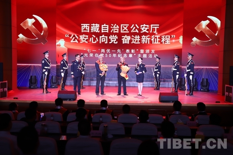 中國西藏網訊 6月29日,西藏自治區公安廳舉行“七一‘兩優一先’表彰”暨“光榮在黨50年”紀念章頒發儀式。