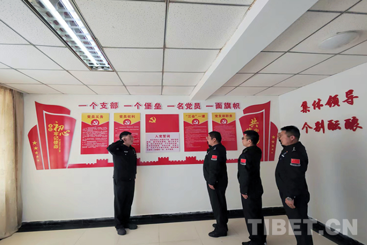 圖為西藏邊檢總站執法調查支隊民警重溫入黨誓詞 攝影:李渠成