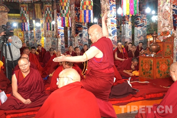 在哲蚌寺,班禪還現場觀摩了2024年度西藏自治區藏傳佛教學經僧人晉升格西拉讓巴學位夏季預考開考儀式。