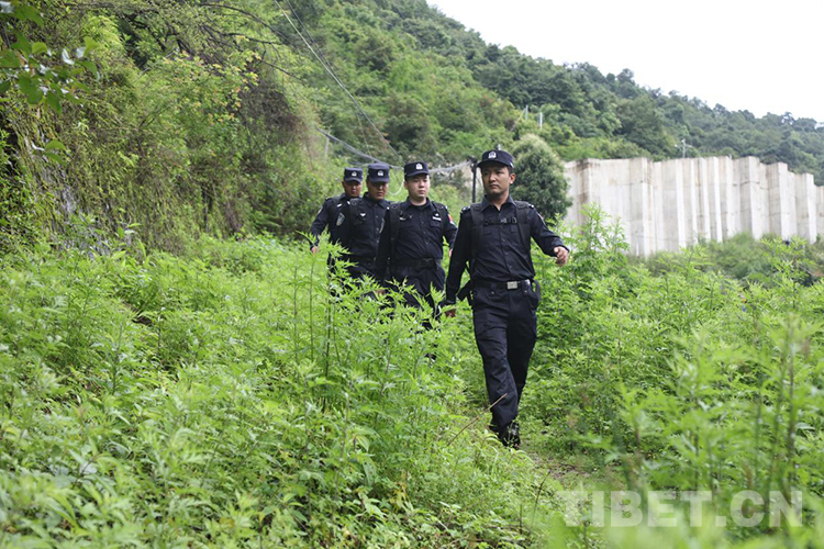 圖為扎西頓珠帶領執勤三隊民警在邊境一線踏查 攝影:鄒興國