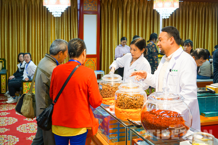 圖為在甘露藏醫藥文化展館內,咨詢藏醫藥產品的游客絡繹不絕 攝影:趙振宇