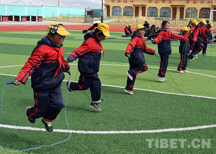 西藏那曲地區那曲縣(現那曲市色尼區)羅瑪鎮中心小學的學生們在進行跳繩比賽(唐召明2016年10月5日攝)
