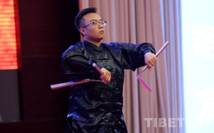 圖為西藏自治區第五屆大學生校園文化藝術節暨首屆大學生藝術展演開幕式現場 攝影:王佳豪