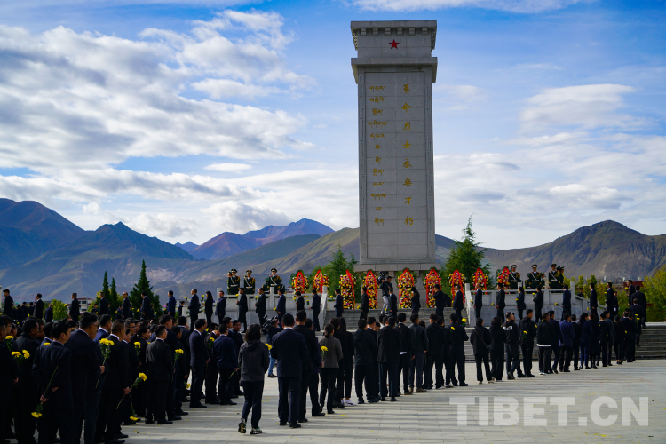 圖為西藏自治區黨政軍領導同全區各族各界干部群眾代表一起,出席向烈士敬獻花籃儀式。 攝影:趙振宇