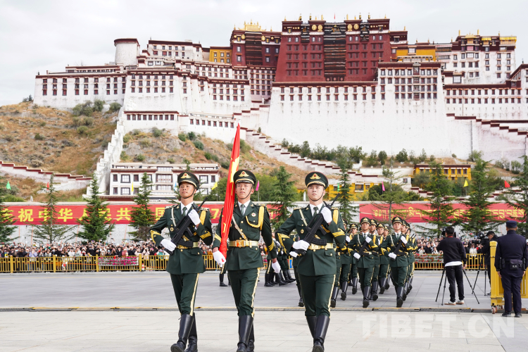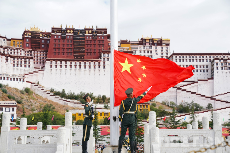 中國西藏網訊 10月1日上午,西藏自治區慶祝中華人民共和國成立74周年“升國旗、唱國歌”儀式在布達拉宮廣場舉行。