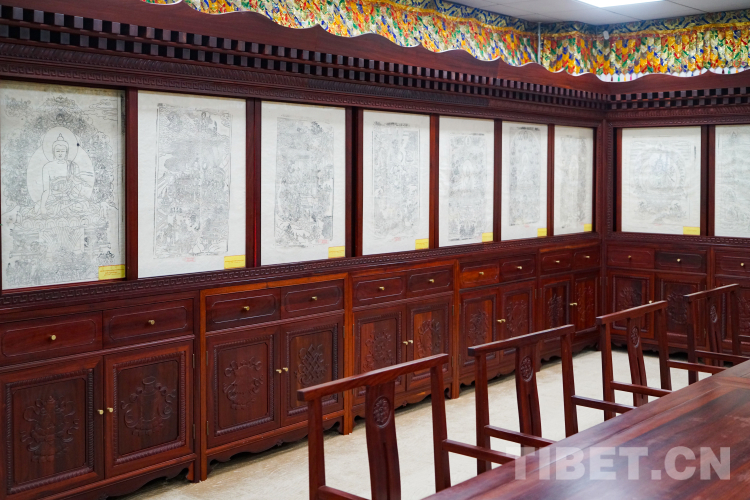圖為西藏民族大學渭城校區(qū)新圖書館內(nèi)的藏學信息研究中心所展陳的木刻版畫 攝影:趙振宇