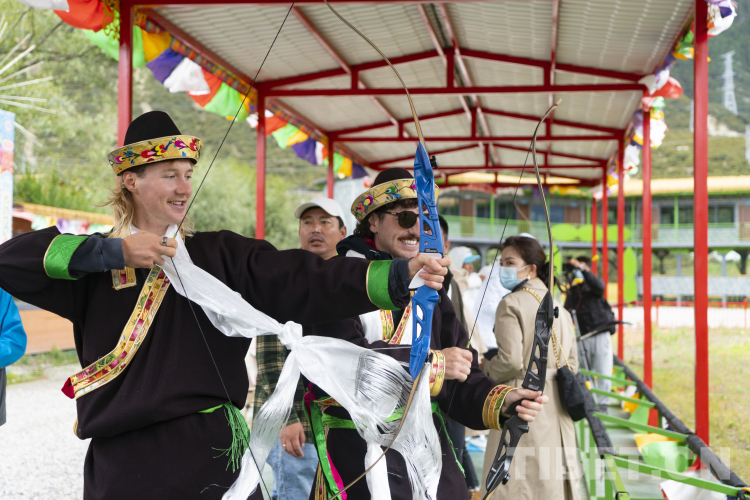 身著工布藏裝的澳大利亞籍五指山1867洲際自行車隊隊員Oliver Anderson正在和身邊的隊友進行響箭比賽。在身邊藏族村民的幫助下,Oliver Anderson的箭術越來越準,每射出一支響箭,兩位外籍運動員都因這種體育項目的獨特魅力而歡呼、擊掌。提起林芝這座城市,Oliver Anderson說:“林芝是一座非常美麗的城市,這里的天氣非常舒適,也使自己比賽狀態非常好。西藏是一處越來越開放的地方,這次能來西藏參加比賽非常榮幸?!?nbsp;