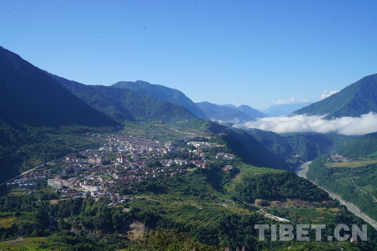 圖為清晨云海散去的墨脫縣縣城全景,北側是雅魯藏布江峽谷 攝影:德吉卓瑪