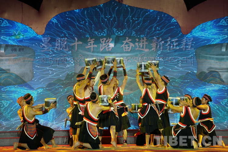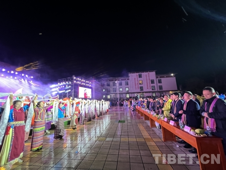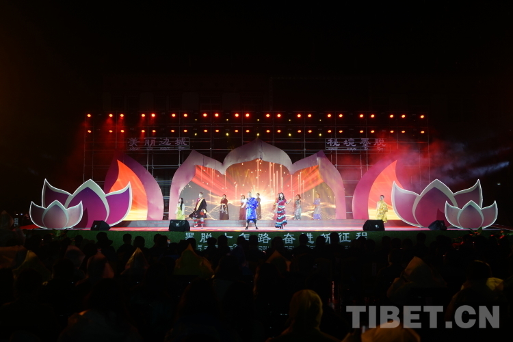 在演出現場,極具門巴族和珞巴族特色的節目,贏得現場觀眾的吶喊與鼓掌。天空下起了蒙蒙細雨,但絲毫沒有影響舞者們的發揮和臺下觀眾的心情,越來越多的墨脫群眾走向廣場,大家揮舞著手中的熒光棒和小國旗,盡情享受墨脫通路十年的這場“文化盛宴”。