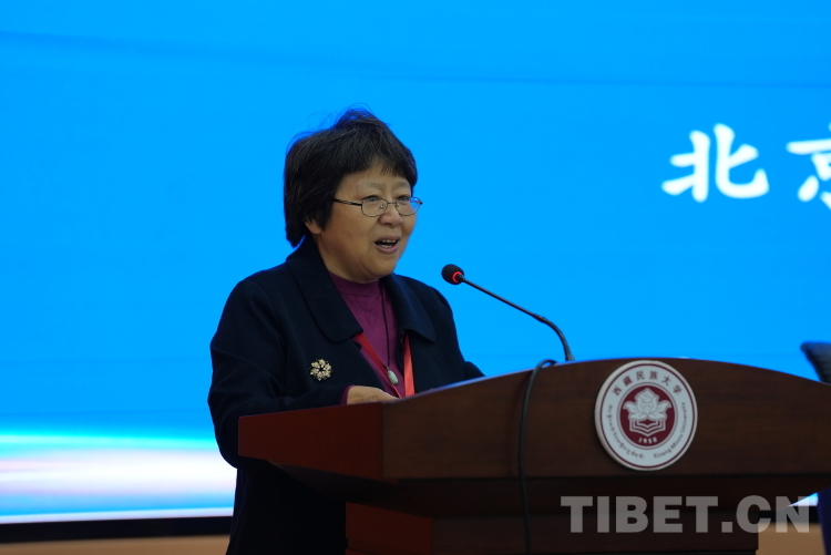 圖為西藏民族大學(xué)黨委副書記、校長羅旺次仁代表學(xué)校致辭 攝影:陳浩力