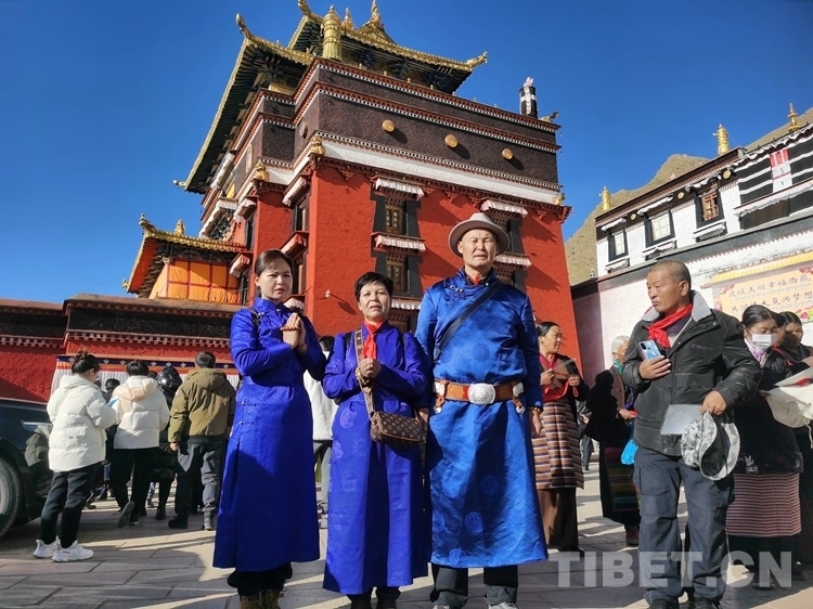 同為蒙古族的索尼婭一家三口從新疆進藏旅游,途中聽聞班禪摸頂的消息后便在日喀則停留了幾日,當日特意穿上民族服飾前來朝拜。“早就聽聞過班禪大師,沒想到此行能有機會得以拜見,特別殊勝、幸福和激動,不虛此行。”接受到班禪的摸頂后,索尼婭眼含幸福的熱淚。