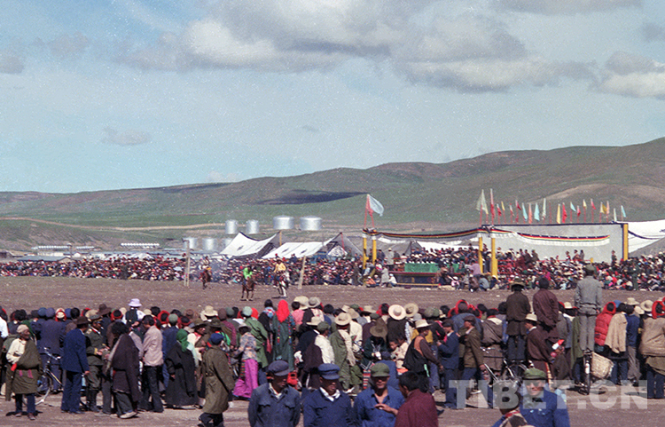 在藏北首府那曲鎮草壩上所舉行的傳統賽馬盛會(唐召明1987年攝)