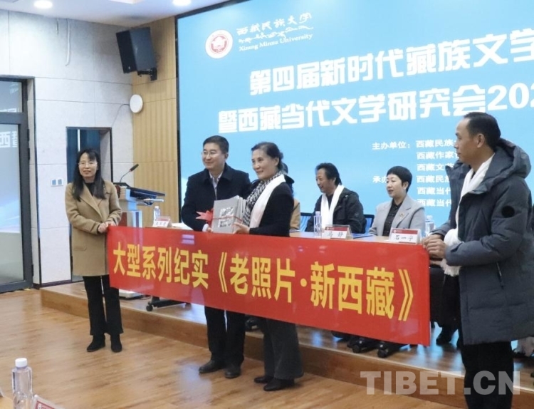 西藏民族大學校友、作家陳琳女士向西藏民族大學文學院贈送了她主編的6卷本大型系列紀實影像集《老照片·新西藏》。她表示,作為西藏文學的一名創(chuàng)作者,首先要思考為誰去寫、寫什么的問題,作家應該堅持為人民而寫作的立場,堅持從民間和現(xiàn)實生活中汲取力量。