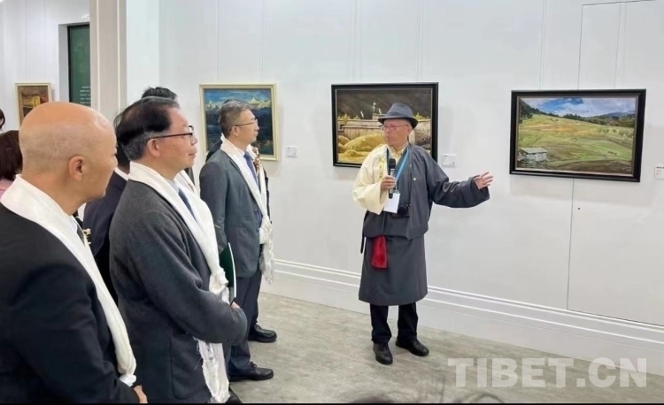 圖為現場嘉賓參觀西藏油畫作品現場
