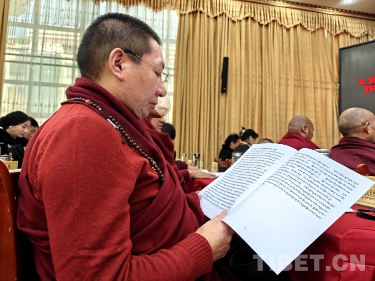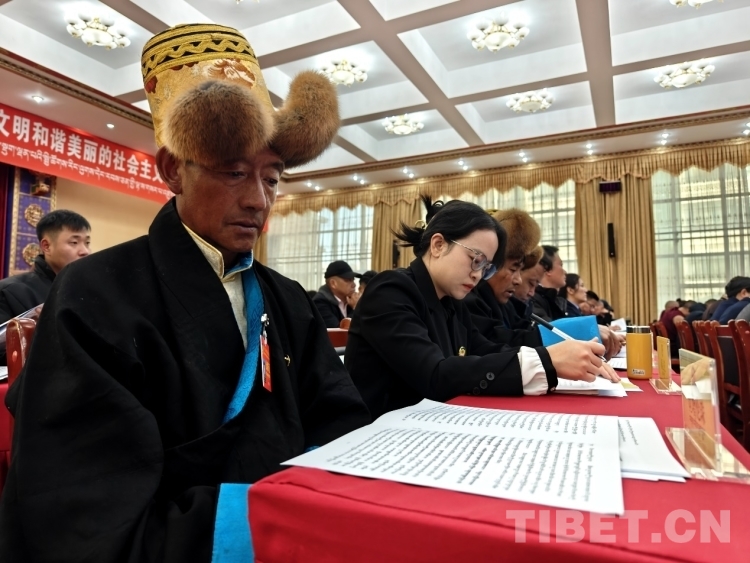 圖為政協委員認真審閱會議資料 攝影:次旦拉姆