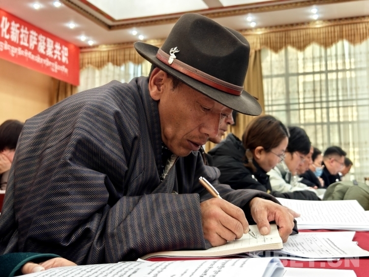 圖為開幕會現場政協委員認真做著筆記 攝影:次旦拉姆