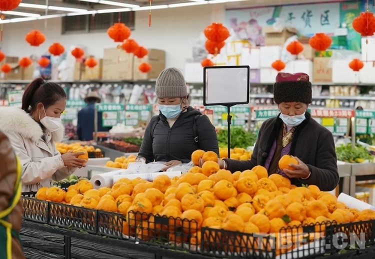 資料圖:2023年春節、藏歷新年前夕山南市各族群眾在超市選購年貨