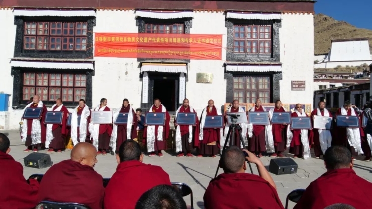 此次公布的第四批日喀則市級非遺代表性項(xiàng)目202項(xiàng)、代表性傳承人223項(xiàng),其中僅扎什倫布寺就有126個(gè)項(xiàng)目和142名傳承人。(中國西藏網(wǎng) 記者/趙振宇 圖片源自文化日喀則微信公眾號)