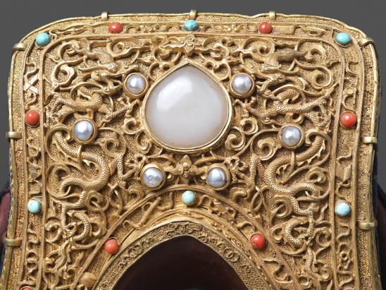 圖為公元18~19世紀嵌寶石鎏金銀馬鞍