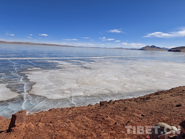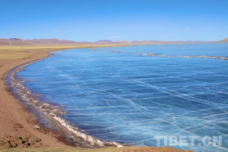 錯那湖湖面海拔4600米左右,面積400多平方公里,是世界上海拔最高的淡水湖,更有冰泡、冰裂、冰推等奇妙的自然景觀。當氣溫急劇下降時,水溫也驟降,湖底產生的氣體在上升過程中被凍在冰中,形成許多細小的白色氣泡,懸浮在厚厚的冰層之中。湖水表面一層被藏北的朔風快速凍結成冰,部分碎冰在岸邊堆積,形成隆起的“冰岸線”。又由于初春晝夜溫差較大,湖冰崩裂,形成網狀的冰裂紋路。這些透明裂紋從岸邊開始,像潮水一樣漫過平地,漫過羌塘草原腹地,漫到天邊,把羌塘大地裝扮成一個冰晶縱橫交錯的世界。(中國西藏網 文/李一凡 張萌萌 龍真多吉)