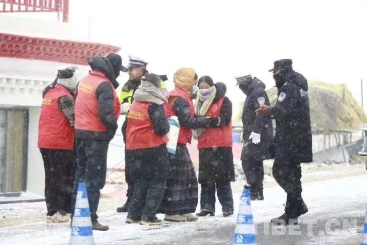 中國西藏網訊 近日,西藏氣象局連續發布大風和暴雪黃色預警。22日,受西風槽影響日喀則市亞東縣帕里鎮范圍降暴雪,G562部分道路積雪厚度達20余厘米。降雪降溫對交通影響較大,為守護轄區內道路安全,帕里鎮四社區駐村工作隊組織12名45歲以下黨員身著紅色志愿服,利用社區愛心驛站配合執勤交警,以輪班形式對轄區內國道沿線進行不間斷巡邏,重點對急彎陡坡、橋面、風吹雪等路段進行不間斷巡查,警民協作確保道路安全暢通。