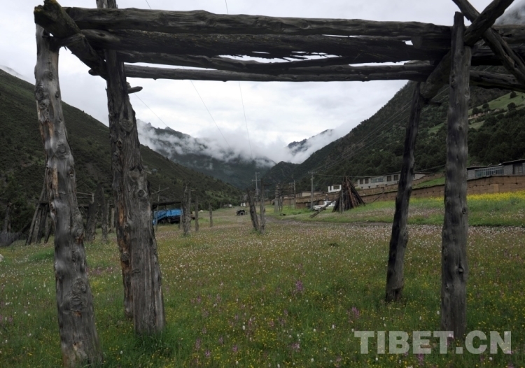 羊秀白嘎風景區的美麗景觀。“蘇毗古遺址群落”就廣泛分布在這里。前面流淌的是杰曲河水(唐召明2014年7月9日攝)