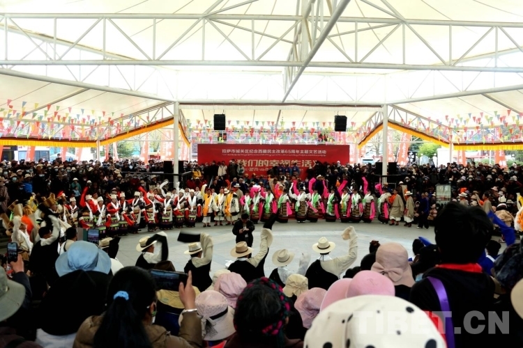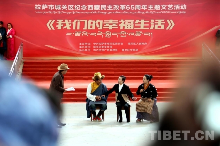 3月25日,西藏自治區拉薩市城關區紀念西藏民主改革65周年主題文藝活動——《我們的幸福生活》在宗角祿康公園舉行。來自城關基層干部群眾組成的文藝隊,精心編排了3個篇章,共12個節目。用真摯的情感,幸福的歌聲,瀟灑的舞姿,展現新時代、新西藏的幸福生活。