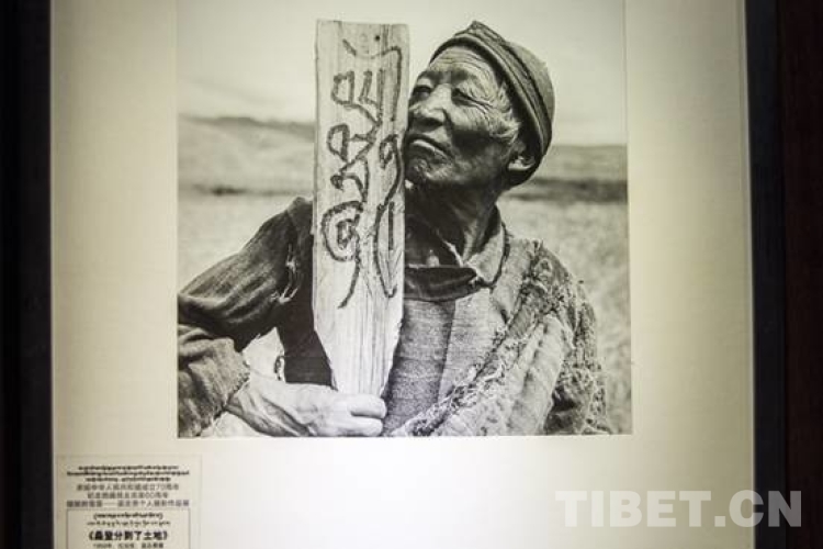 珍貴的照片《桑登分到了土地》拍攝于1959年,身世悲苦的老農(nóng)奴桑登,在分到土地那一天,他把那象征分土地的木牌緊緊地貼在臉頰上,這個(gè)木牌上寫著藏文:桑登田。