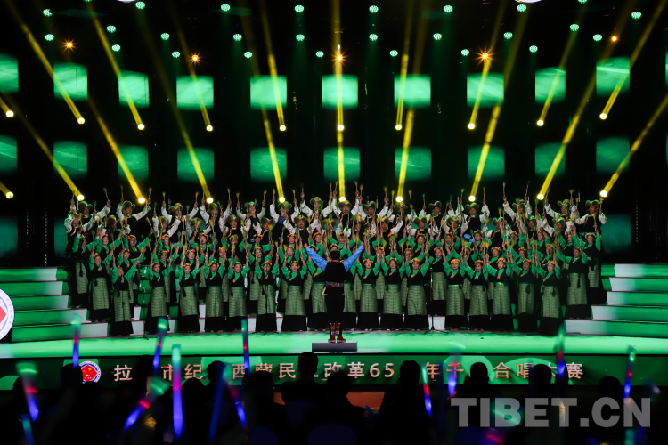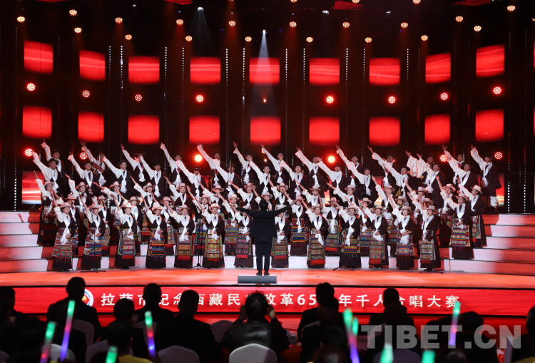 中國西藏網訊 3月27日晚,《盛世中國 幸福西藏》拉薩市紀念西藏民主改革65周年千人合唱大賽在拉薩師范高等專科學校體育館舉行。