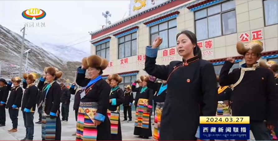 圖為西藏自治區(qū)山南市桑日縣婦聯(lián)在奴卡社區(qū)開展活動(dòng) 圖源:西藏衛(wèi)視
