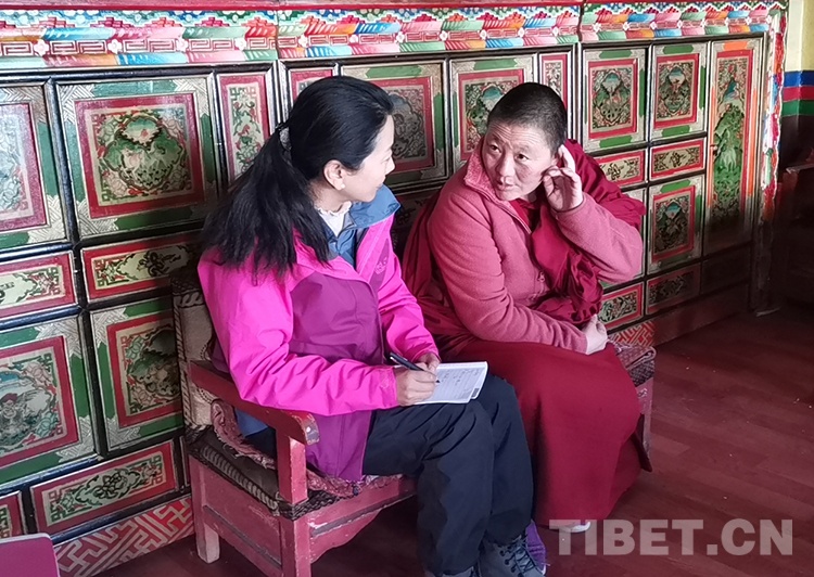 圖為邊巴拉姆在寺廟調研 受訪者供圖