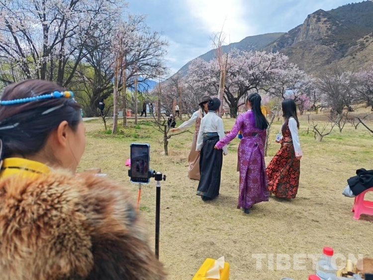 在嘎拉村桃花源內、民族文化體驗區、產品展銷點……都能看到林芝市職業技術學校學生們的身影。學生們走進桃花林,以藍天白云、皚皚雪山為背景,通過直播帶全國各地的網友們云游林芝“桃花第一村”,展示著桃花灼灼盛開的美景。他們生動的解說和精彩的直播吸引了大量觀眾“云游林芝 云賞桃花”,體驗不一樣的桃源春色。
