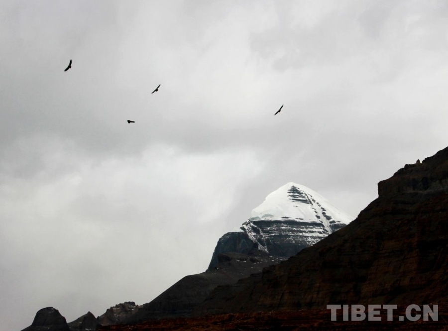 圖為位于西藏自治區阿里地區普蘭縣巴嘎鄉的岡仁波齊周圍群鷹翱翔 攝影:劉莉