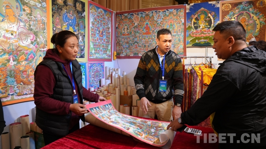尼泊爾的唐卡、佛像、毛毯等深受當地消費者的喜愛。來自尼泊爾的次旺卓嘎是第四次來拉薩,她說:“西藏消費者特別喜歡毛毯,我們卡莫地毯工業的毛毯選的都是質量最好的,均為純手工、純羊毛制作,在花樣上也采用了與以往不同的元素和圖案,深得大家喜愛,能夠參加展銷會我很開心。”