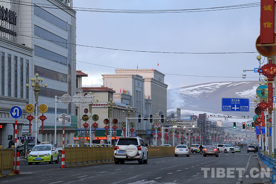 圖為藏北首府那曲鎮(zhèn)街道新貌(唐召明2023年12月17日攝)
