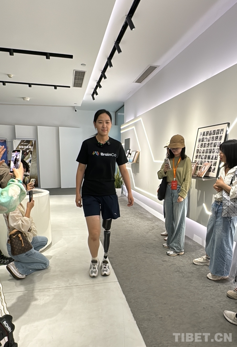 圖為BrainCo強腦科技產品體驗官高瑞霞在自信地走路