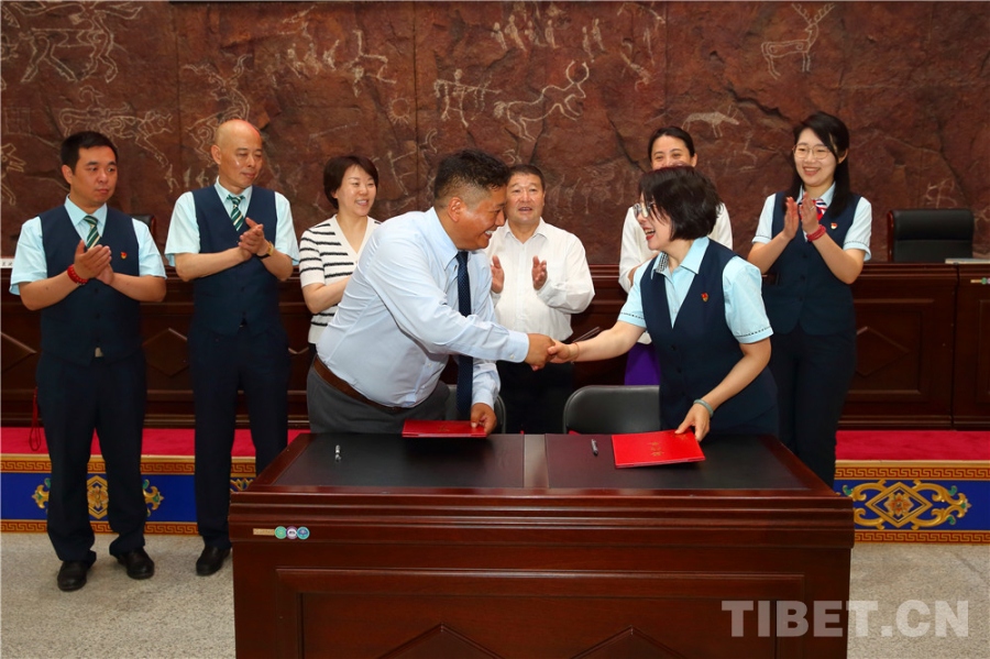 中國西藏網訊 6月6日,中國藏學研究中心西藏文化博物館與中國郵政集團有限公司北京市朝陽區分公司聯合建立“北京西藏文化郵空間”合作簽約儀式在西藏文化博物館(下文簡稱“博物館”)舉行。中國藏學研究中心(下文簡稱“藏研中心”)副總干事李德成、中國郵政集團有限公司北京市朝陽區分公司總經理梁洪濤、藏研中心相關部門負責人出席活動。